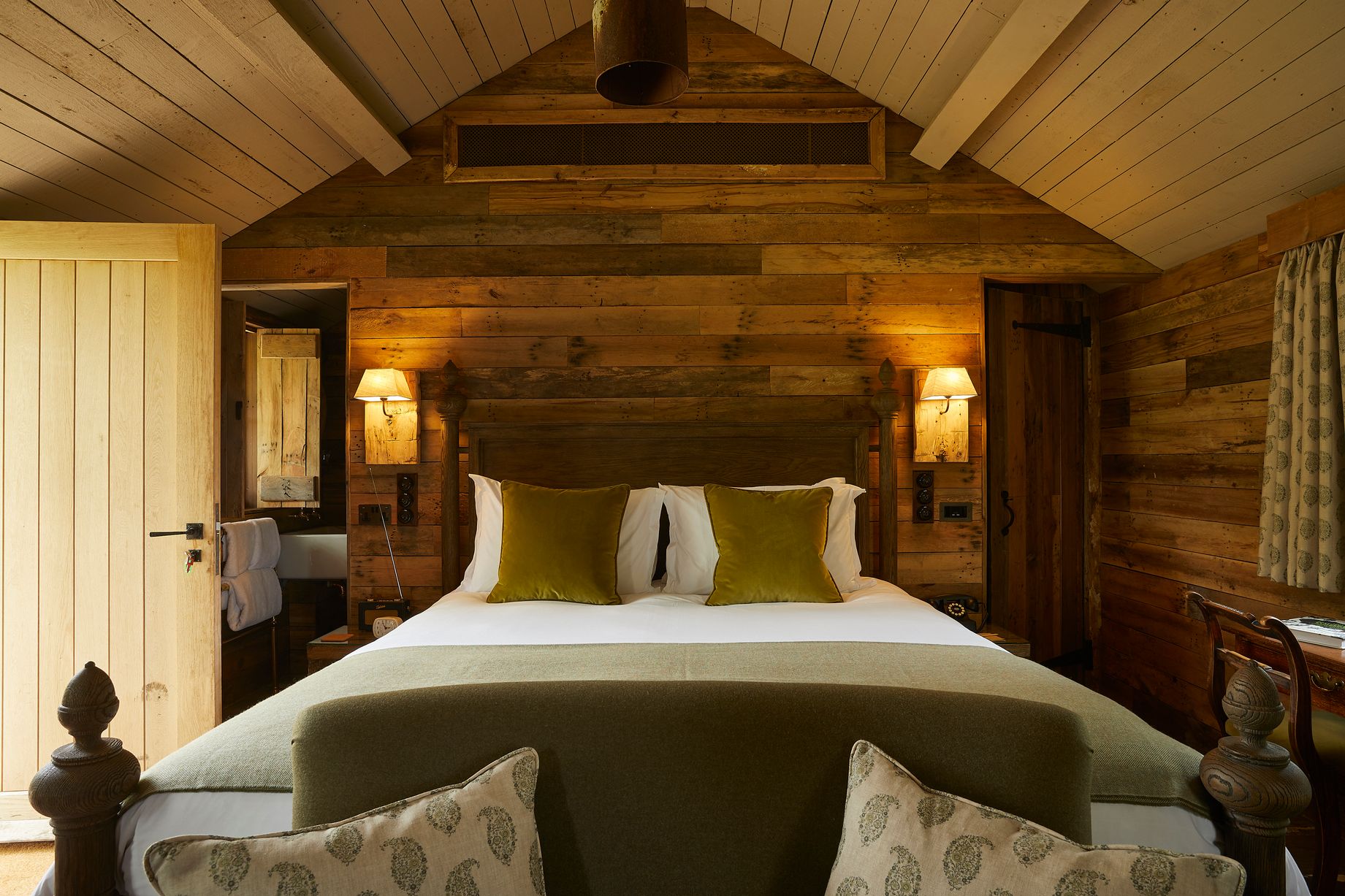 Nestled in the water meadows on stilts and set along a boardwalk, the Hop Pickers’ Huts are a unique addition to THE PIG-at Bridge Place. Full of rustic reclaimed texture, cosy furnishings and each with its own log burner these Huts are made for adventurous escapes for two. Each Hut has a super-king bed, monsoon shower and a bath in the bedroom.